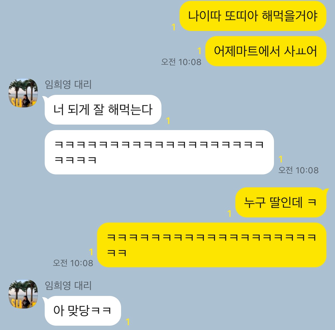 근데 희영이가 더 맛 감 그래서 내가 그 때 깸 ㅋㅋ