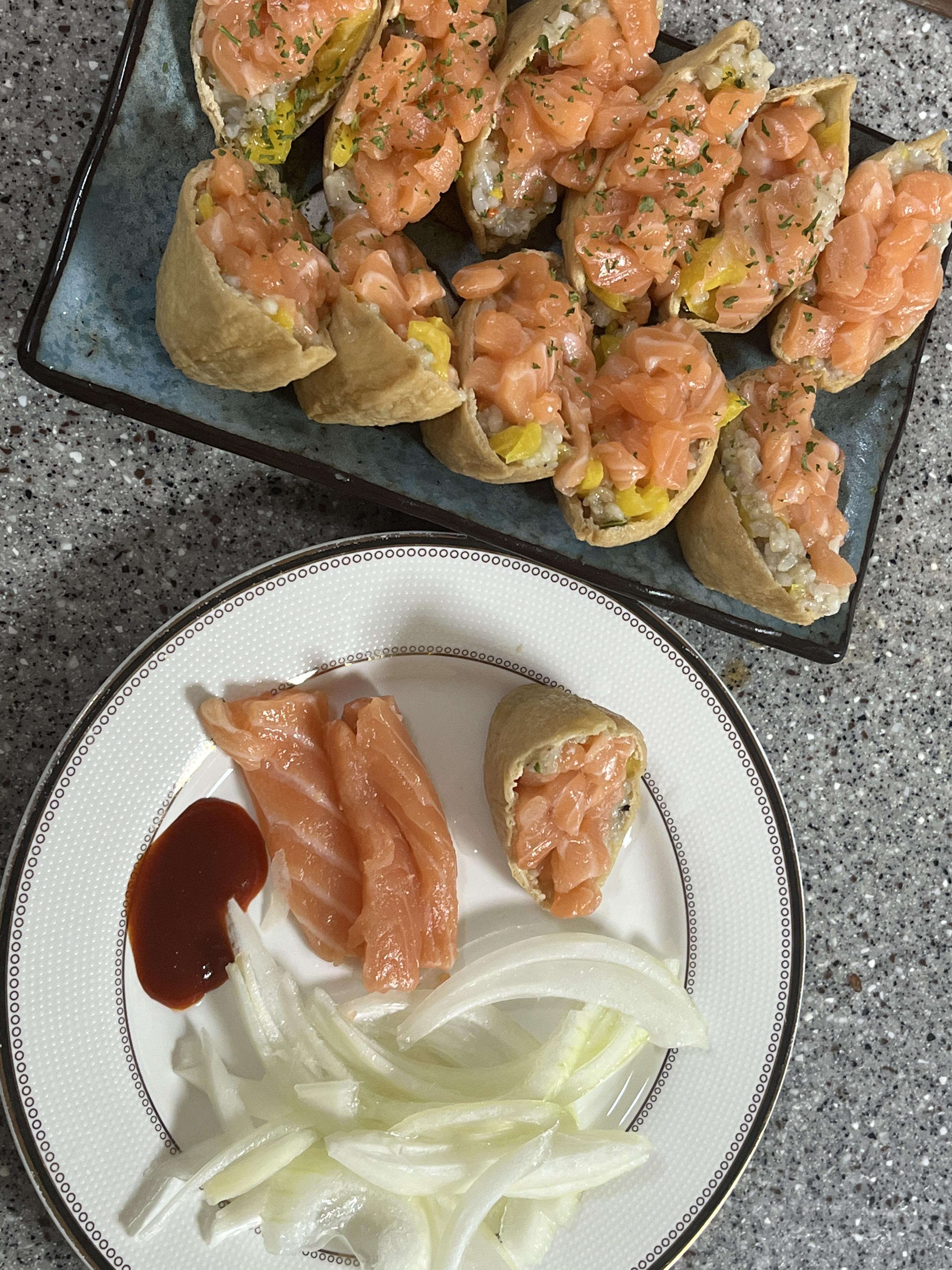 연어유부초밥 맹글어서 동생이랑 냠냠 ~